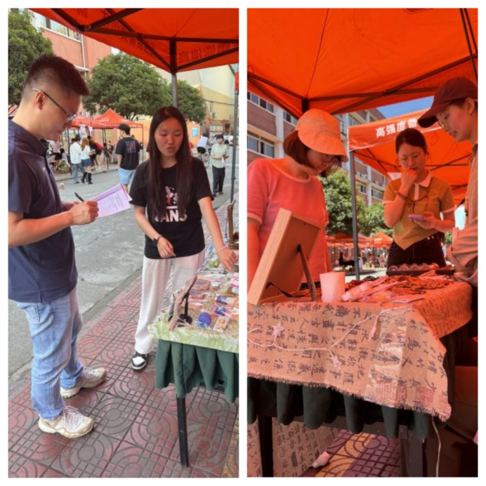 5月13日比赛正式拉开帷幕!大赛现场,各个摊位经营的产品琳琅满目,从绿植、手工艺品到DIY工艺品,从人体手绘到首饰挂件十分丰富。参赛者充分发挥自己的创意和想象力,将摊位装点得既美观又实在,吸引了众多师生驻足询问和消费。在经营过程中,参赛者不仅要关注商品的品质和价格,还要善于运用各种营销策略来吸引顾客。他们各显神通,通过打折、赠品、互动游戏等方式吸引顾客驻足。同时,他们还根据市场变化及时调整经营策略,尽最大努力实现盈利。