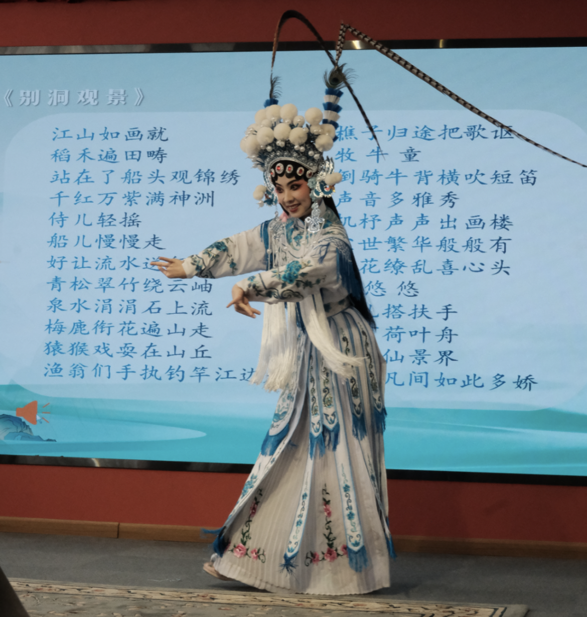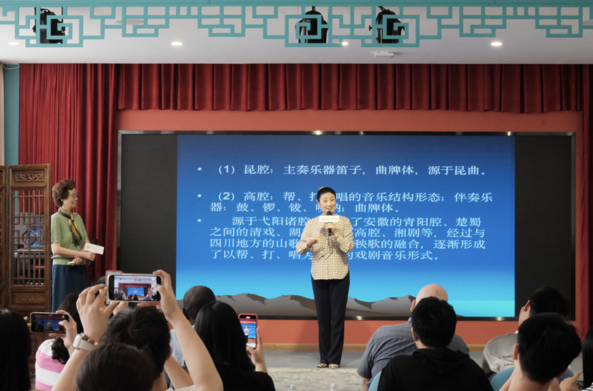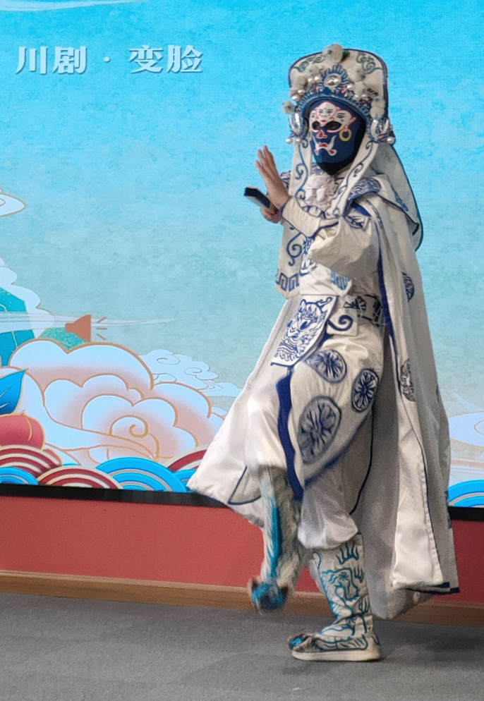 陈巧茹女士对公司到访师生表示了热烈欢迎,并为大家举行了川剧专题讲座。她介绍了川剧的起源、发展以及在现代社会中的传承与创新,强调了川剧表演中“唱、念、做、打”的基本功,并亲自示范其中的技巧,展示了川剧里的舞台技法及精彩的川剧变脸表演。她还分享了自己在川剧传承工作中的心得体会,呼吁大家共同关注和支持川剧的发展。