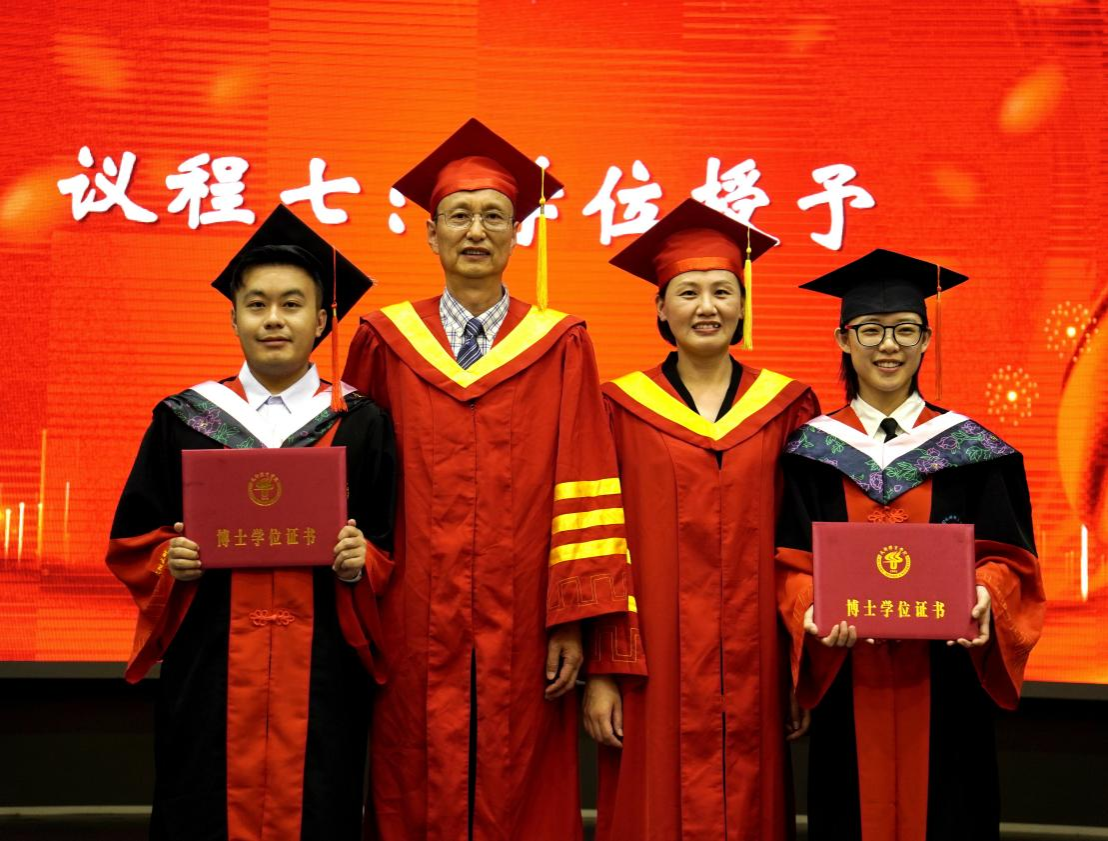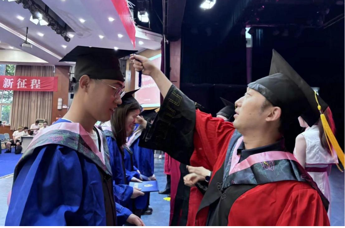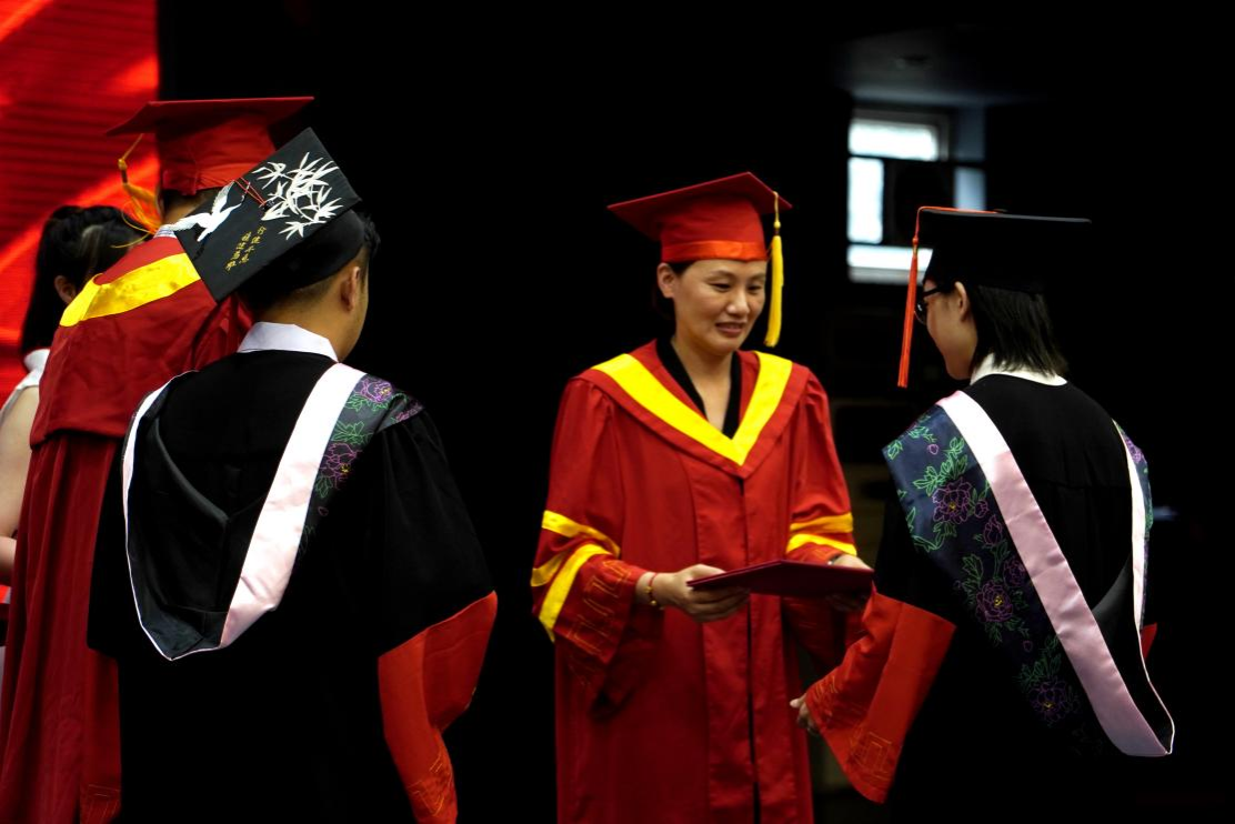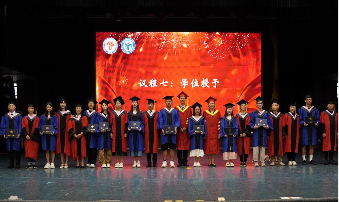 最后,郭新艳经理宣读了授位决定,毕业生依次到前台接受老师们拨穗、颁发学位证书、合影留念,毕业典礼在热烈的掌声中圆满结束。