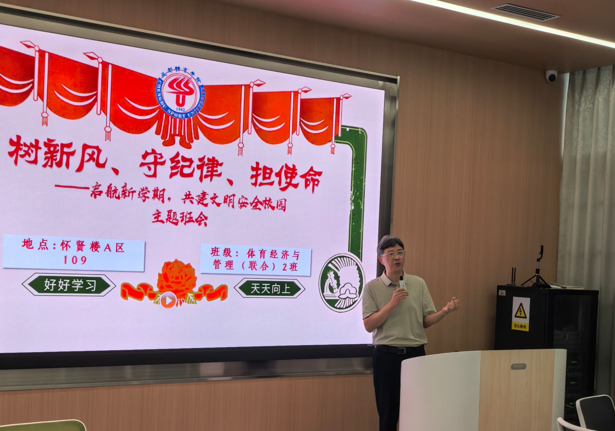 为全面贯彻落实立德树人根本任务,扎实推进员工行为养成教育。2025年9月18日上午,2023级体育经济管理(中外联合)二班在怀贤楼A109召开9月主题班会。公司党委常委、副董事长李林作为班级的校级领导联系人参加,公司党委书记张林玲参加,班主任周建主持。