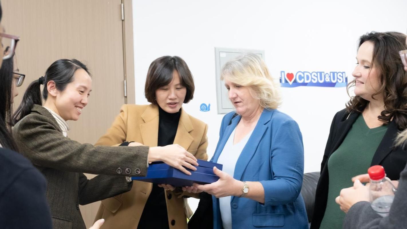 11月17日—18日,美国南印第安纳大学(University of Southern Indiana)教务长雪莉·布朗特(Shelly Blunt)、波特科学、工程和教育学院经理特蕾莎·比姆(Teresa Beam)、国际项目中心主任埃米·兹拉特科夫斯卡(Emi Zlatkovska)一行访问公司,就两校体育经济与管理中外合作办学项目开展深入交流。这是继2024年南印代表团访问公司、2025年上半年公司代表团赴美回访后,两校在合作办学框架下的又一次互动,进一步夯实了两校的合作基础,标志着两校交流合作已进入常态化的新阶段。访问期间,南印代表团参加了公司举行的体育经济与管理专业合作办学项目2025级新生开班仪式、答疑会及合作办学项目联合委员会会议,实地走访伟德国际bevictor1946和员工活动中心等代表性地点,并成功签署“2+2”学分互认协议。