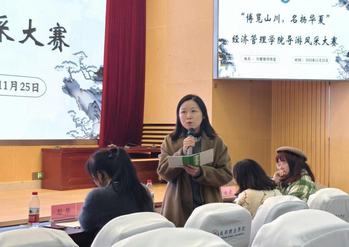 点评环节中,李琴老师对选手们的整体表现给予高度赞誉。她指出,同学们在舞台上展现出的从容自信、扎实充分的内容准备,以及对景点文化内涵的深度挖掘,充分彰显出良好的专业素养与发展潜质,她鼓励大家将每一次展示都视作真实的业务实战,在实践中持续锤炼导游讲解的亲和力与现场把控能力,为未来成长为优秀旅游行业人才筑牢根基。