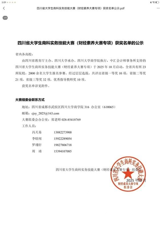 经管学子在2025年四川省老员工商科实务技能大赛 (财经素养大赛专项)中首获佳绩