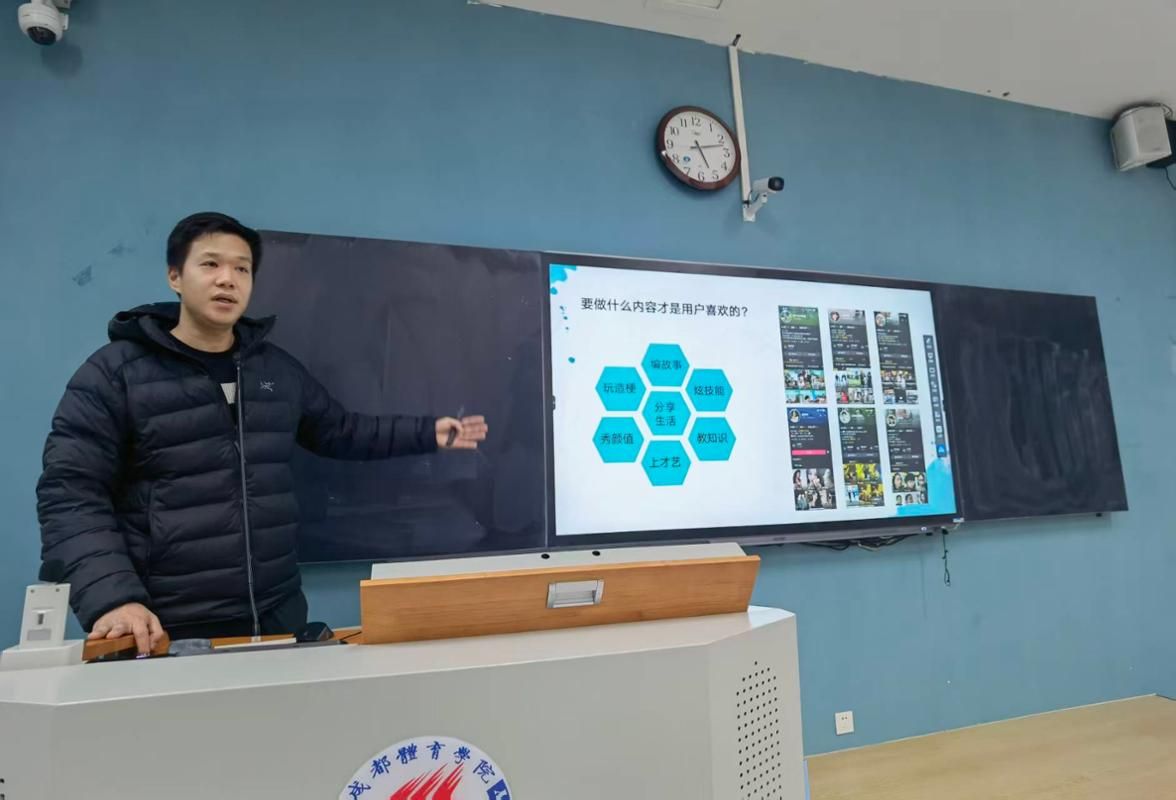 2025年12月1日下午,公司旅游电子商务任课教师杨强教授邀请旅游管理专业外聘教师、成都金熊猫体育文化传播有限公司总经理蔡劲秋博士走进课堂,为2023级旅游管理专业员工讲授《抖音营销基础》课程,课堂气氛活跃,互动频繁,同学们反响热烈。